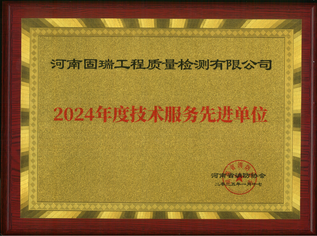 熱烈祝賀河南固瑞工程質量檢測有限公司榮獲河南省消防協會2024年度技術服務先進單位!?。?