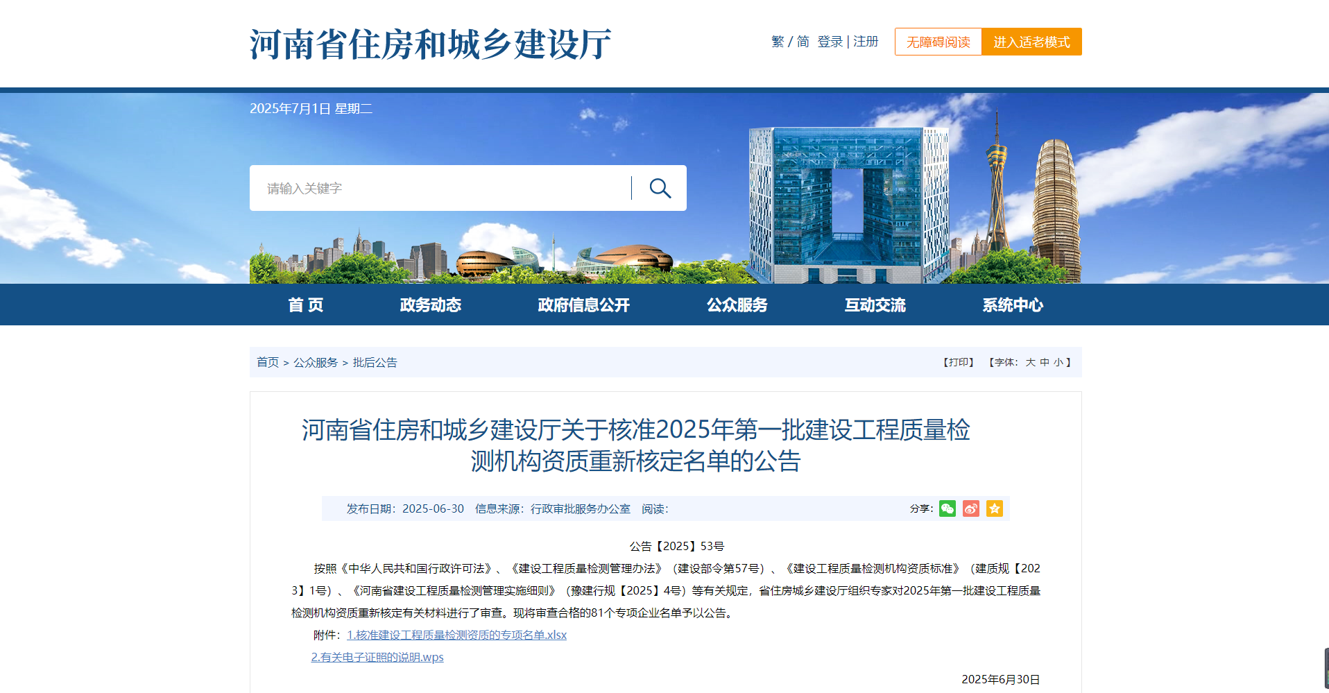 熱烈祝賀我司通過河南省住建廳2025年第一批建設工程質量檢測機構資質重新核定?。?!